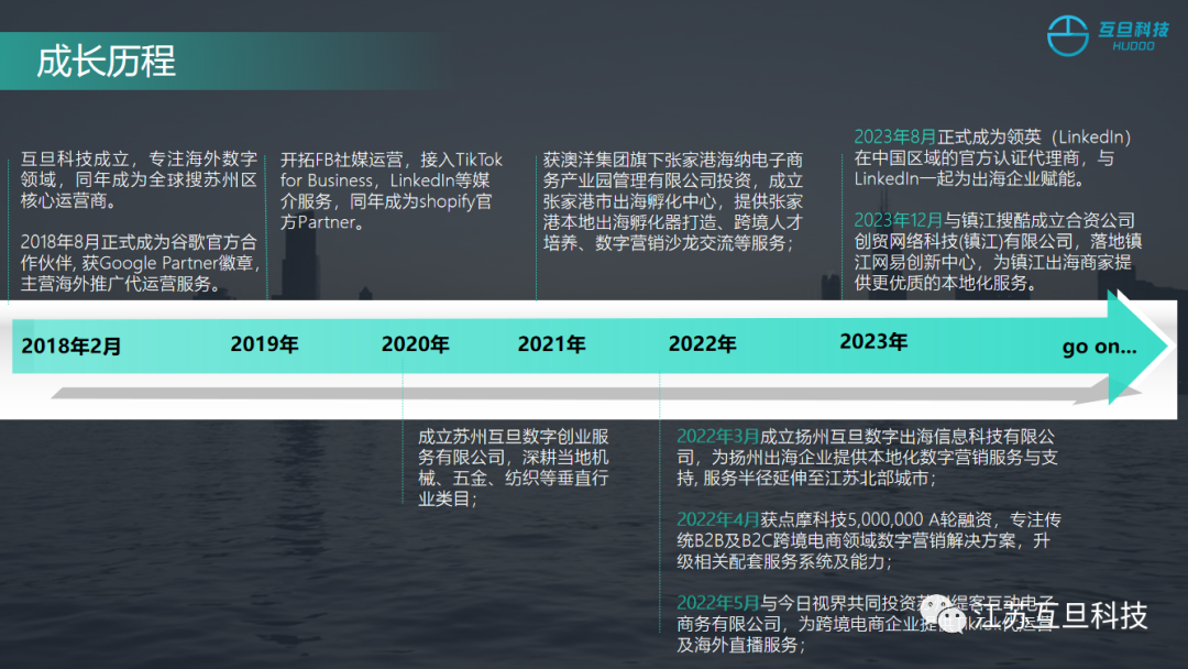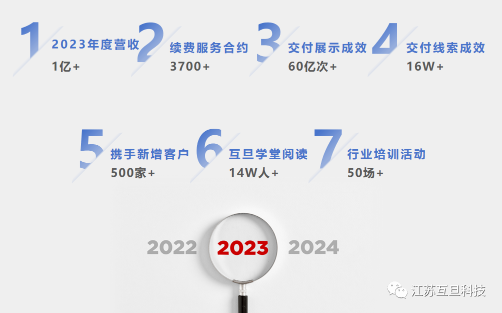 在2023年,互旦科技取得了不同以往的成績,我們不僅業績營收增長了一倍以上,也在行業和市場中收獲了更高的聲量,同時我們堅持更新學堂知識分享和舉辦培訓活動,賦能更多出海客戶,攜手前行!