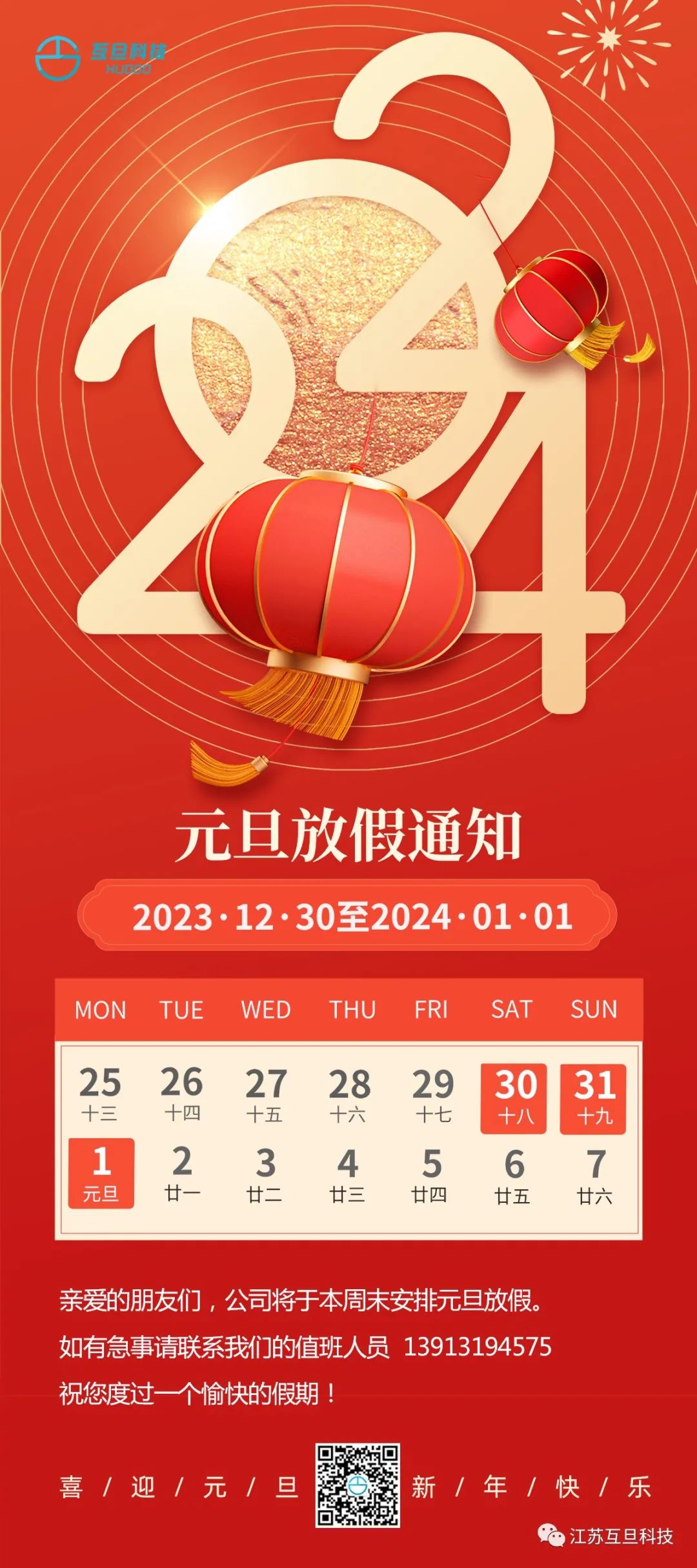 最后,互旦科技全體員工提前恭祝大家2024新年快樂,身體健康,萬事如意!