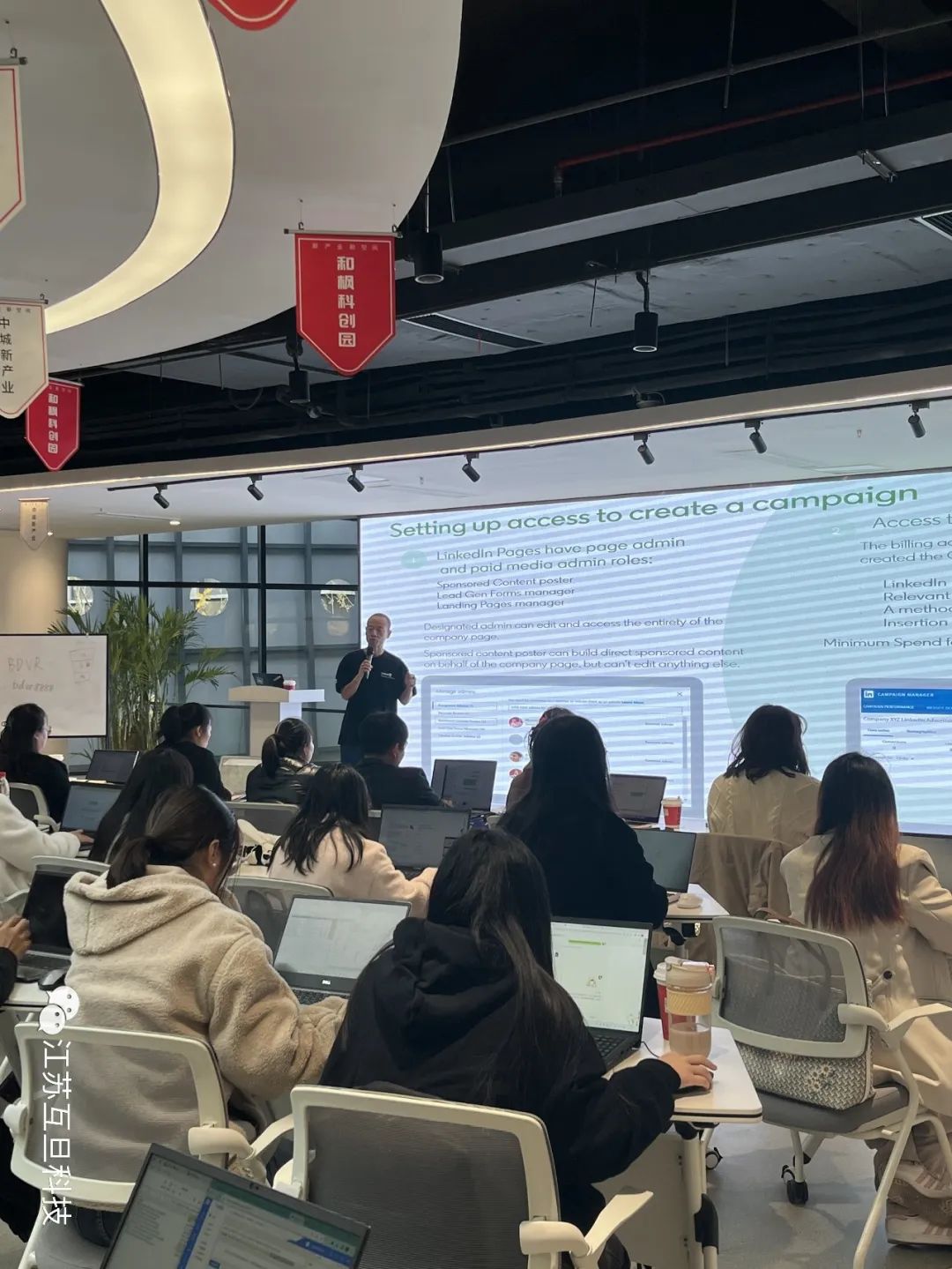 互旦科技是領英(中國)官方代理商之一,為了更好地提升自身領英營銷服務專業水平,進而賦能廣大外貿客戶做好出海營銷服務,2023年11月23日,領英(中國)連同互旦科技一起,舉辦了East China Certification Day的活動。來自領英(中國)的sky老師和李智老師從LinkedIn 廣告、報告和分析簡介、目標定位等板塊,為現場成員帶來了一場酣暢淋漓的講解,讓大家都收獲滿滿!