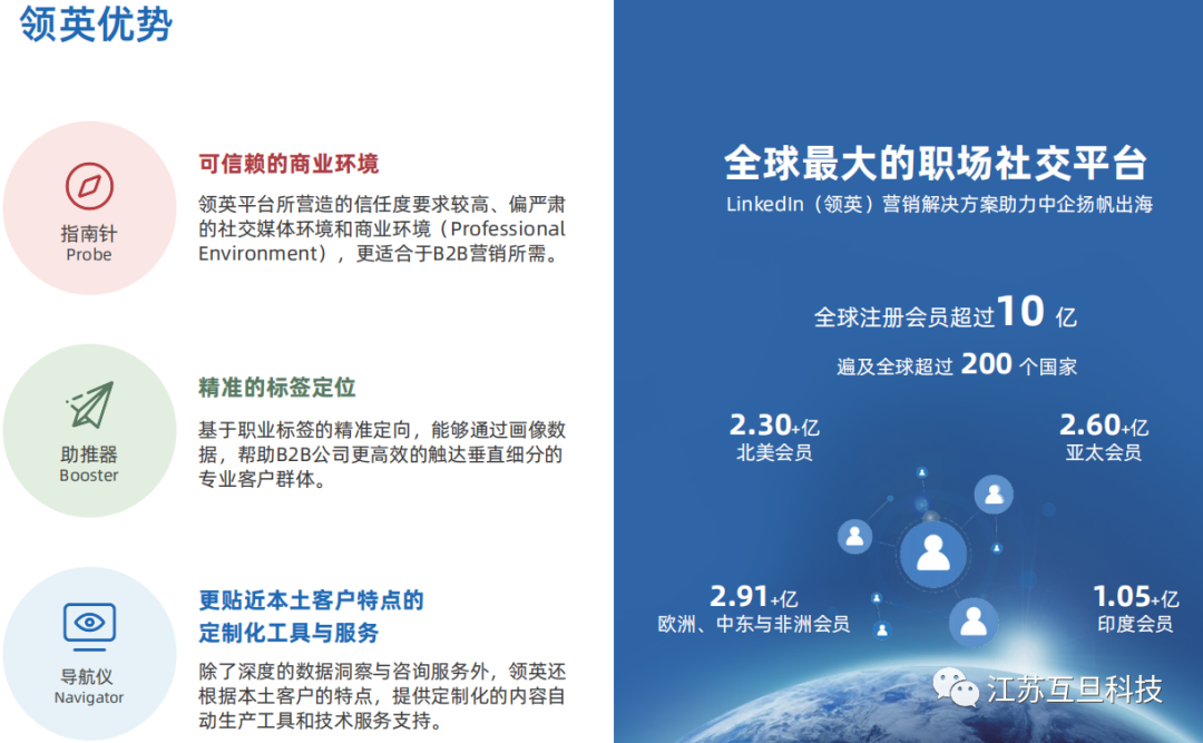 作為一個具有獨特優勢和價值的出海營銷平臺,領英可以幫助出海企業實現品效合一,推動海外業務的高質量發展,如您對領英營銷感興趣,歡迎聯系互旦科技。