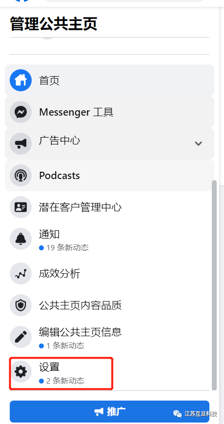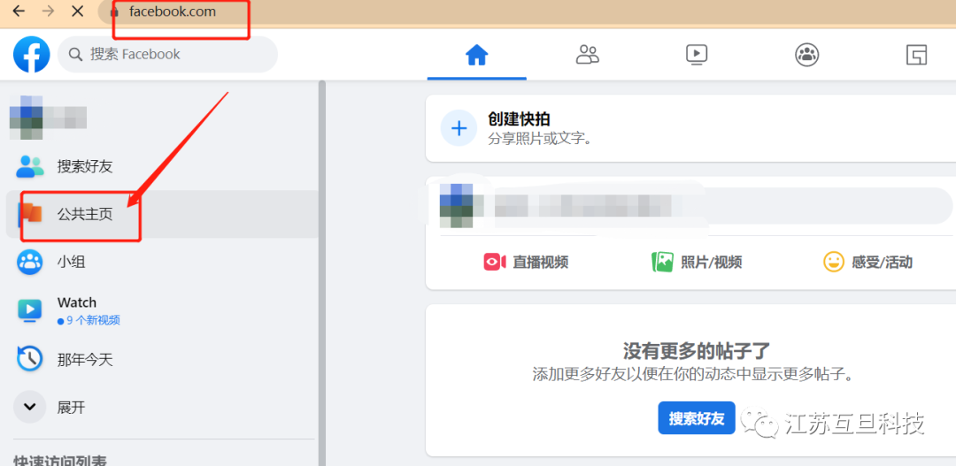 - 在動態消息左側菜單中,點擊? 公共主頁。