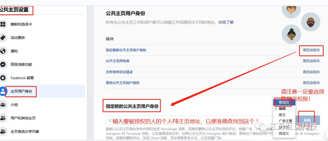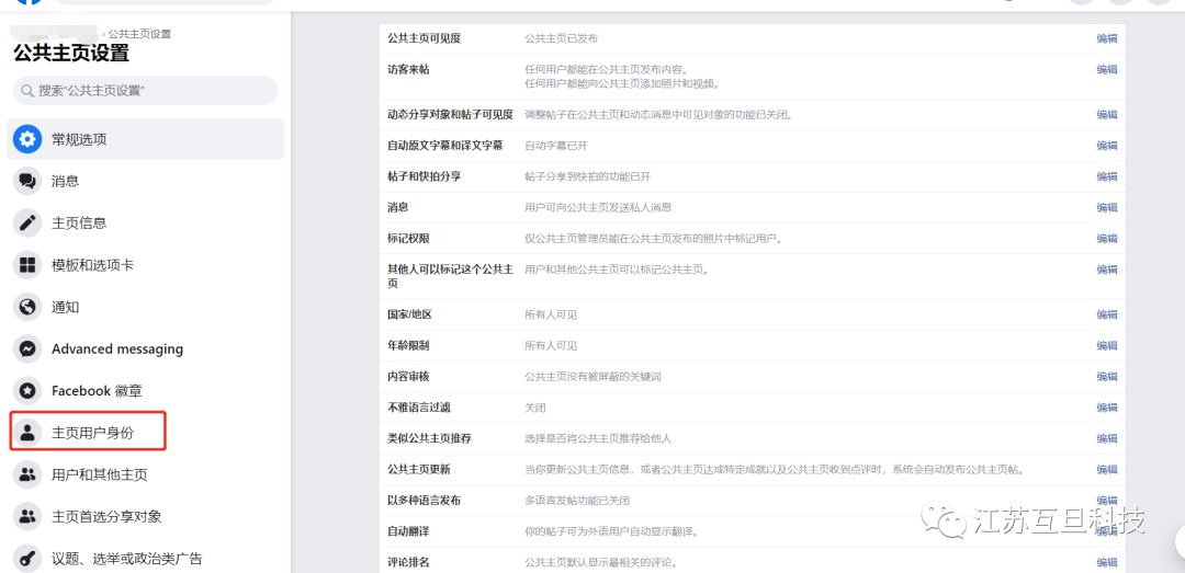 打開公共主頁首頁-左下角點擊【設置】-【主頁用戶身份】-?【指定新的公共主頁用戶身份】