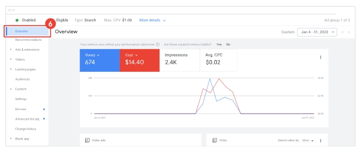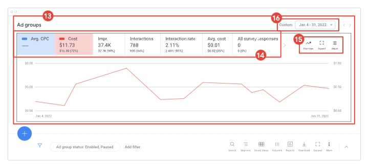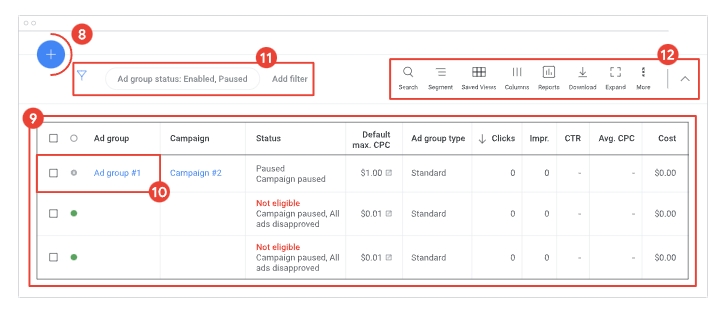 ② 您可以使用導(dǎo)航面板來選擇廣告系列或廣告組。