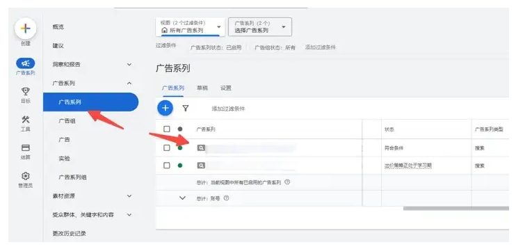 ③ 在查看客戶賬號時(shí),您可以點(diǎn)擊箭頭圖標(biāo) ,展開廣告系列面板
