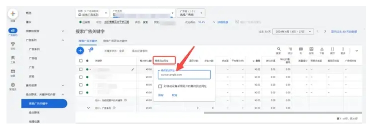 經(jīng)常有用戶提問,是否可以在搜索廣告的關(guān)鍵詞設(shè)置里,為每個(gè)不同的關(guān)鍵詞設(shè)置不同的落地頁。今天我們就來分享一下在關(guān)鍵詞層級設(shè)置最終到達(dá)URL(用戶在點(diǎn)擊鏈接或執(zhí)行某個(gè)操作后,最終被引導(dǎo)到的目標(biāo)網(wǎng)頁地址。)的方法分享。