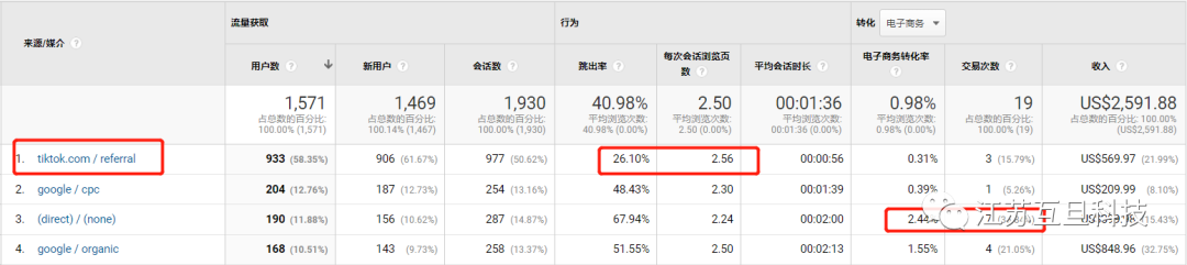 數據:Tiktok的官網引流跳出率竟然能低至26%!除了TIKTOK渠道有直接成交,直接進入網站的用戶成交量也有明顯的提升!
