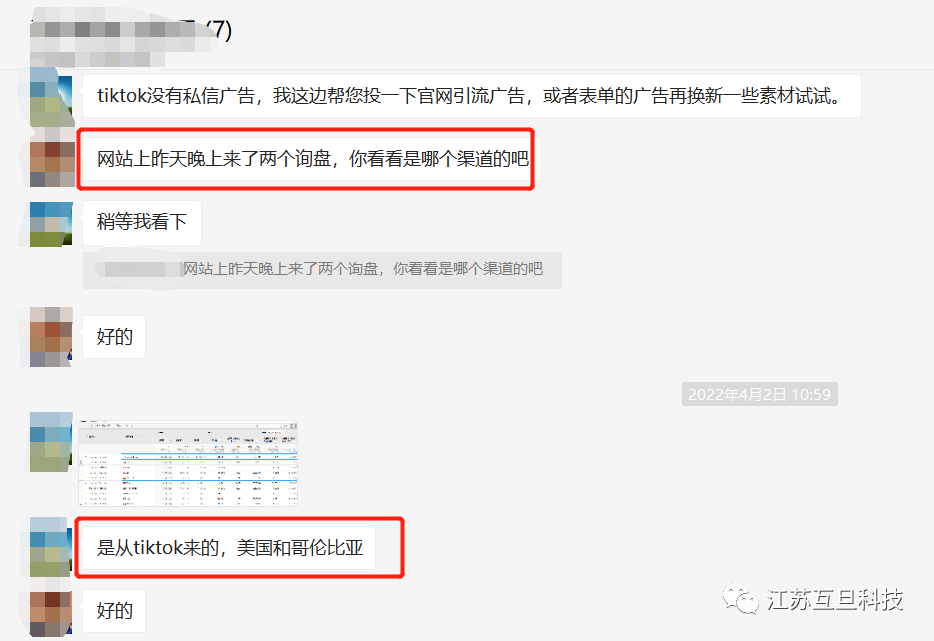 客戶投放的是Tiktok 官網引流廣告,剛開始投,官網就收到了兩個詢盤!